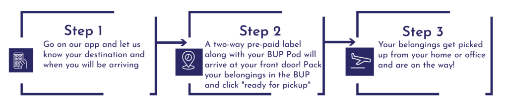 Arrive to your destination with your belongings already there and remember your FIRST BUP is always free with every trip!